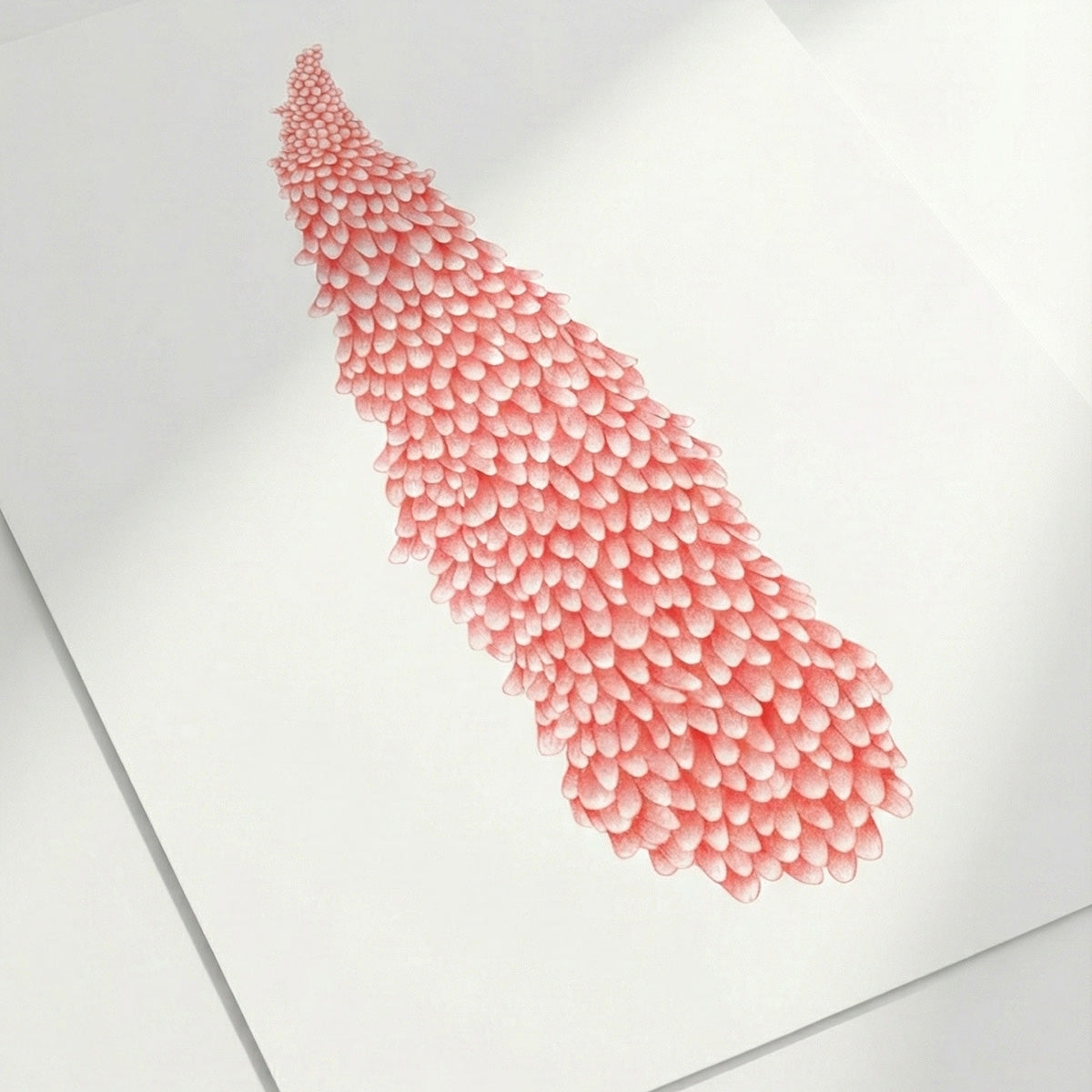 Je dessine ces formes végétales avec la même attention que les figures humaines, car les plantes portent, elles aussi, une présence pleine et essentielle. Elles m’inspirent par leur silence et leur immobilité, qui se révèlent pourtant avec force à travers leurs lignes et leurs couleurs.